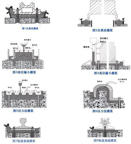 根据设备机座的实际情况,选择相应的灌浆方式,由于灌浆料具有很好的流动性能,一般情况下,用"自重法灌浆"即可,即将浆料直接自模板口灌入,完全依靠浆料自重自行流平并填充整个灌注空间;若灌注面积很大、结构特别复杂或空间很小而距离很远时,可采用"高位漏斗法灌浆"或"压力法灌浆"进行灌浆,以确保浆料能充分填充各个角落。