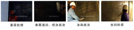 ◆ 用喷枪将搅拌均匀的底涂喷涂在混凝土表面和钢筋表面,确保表面无遗漏。待底涂固化后进行下一工序。